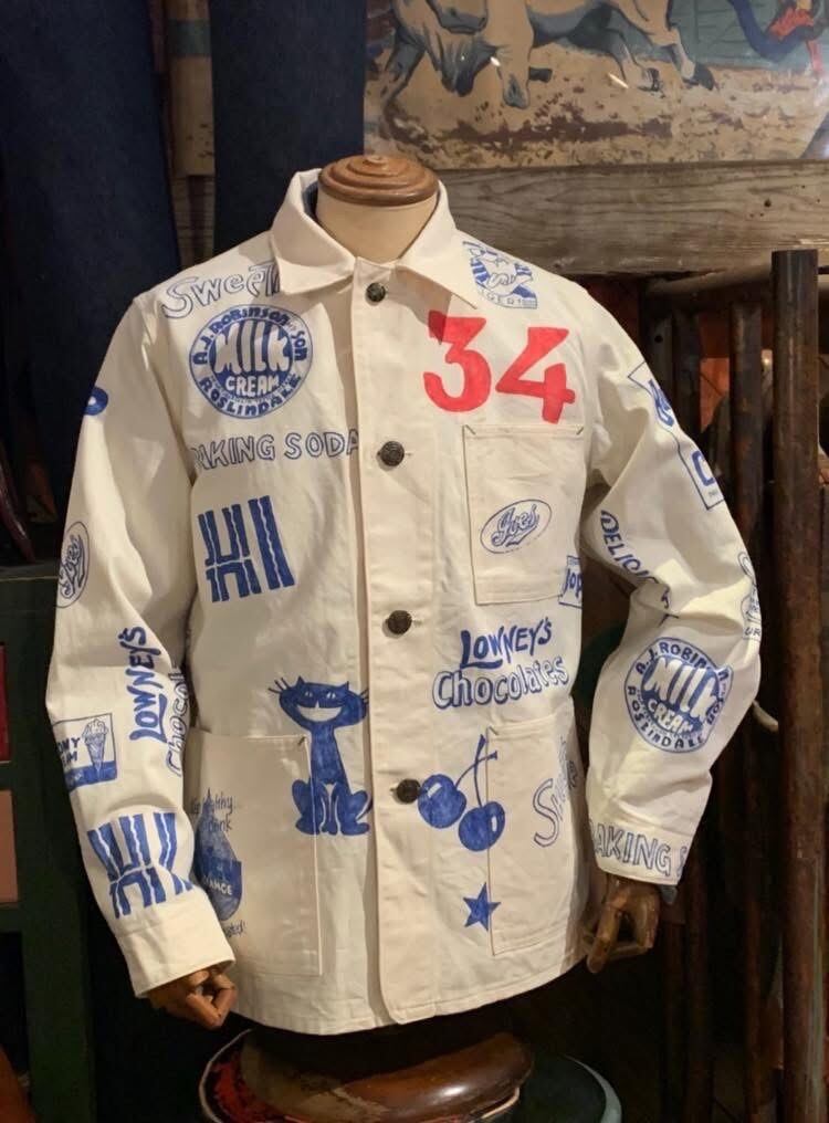 "HAND PAINT" 9oz.WHITE BOST SAIL DRILL WORK COAT by STANDARD